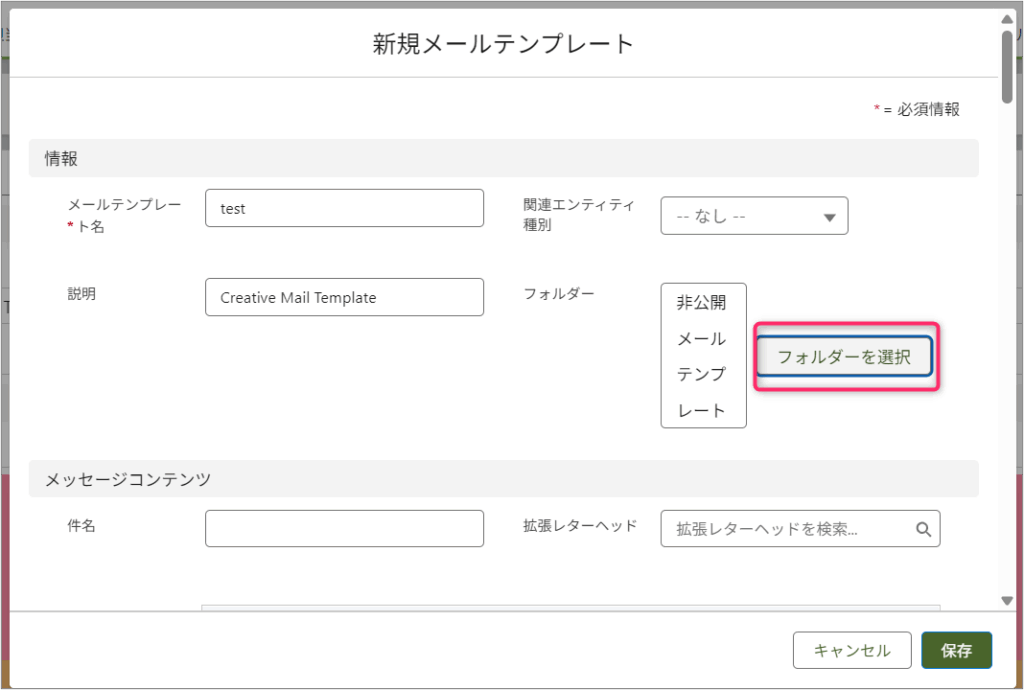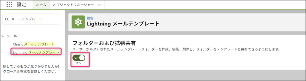 - フォルダ作成には「Lightningメールテンプレートのフォルダの作成」権限が必要