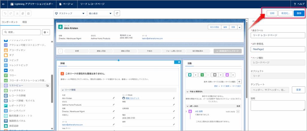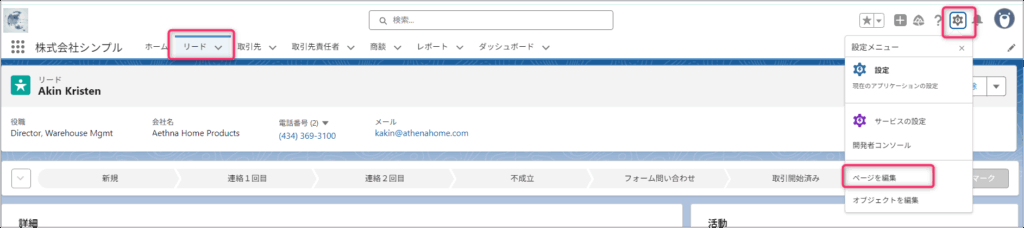3. 編集ボタンをクリックすると該当のLightningレコードページが開きます。