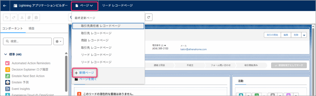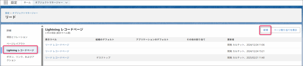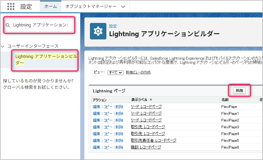 新しくLightningページを作成する場合の手順