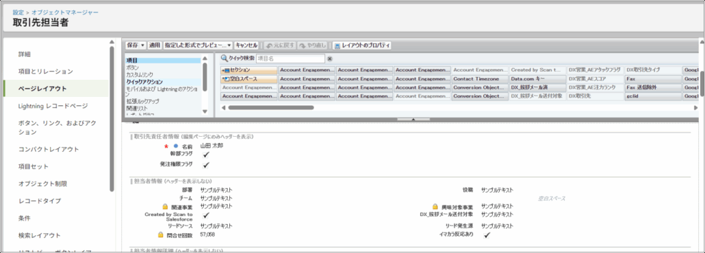 Salesforceでは、オブジェクトごとに表示項目の順序や構成を自由に変更できるため、ユーザーごと・業務ごとの最適な画面設計が可能になります。