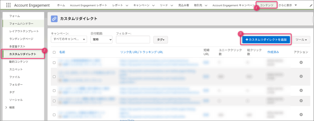 Account Engagementにおけるカスタムリダイレクトとは、トラッキング機能付きの短縮URLです。