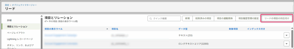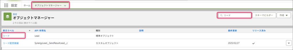 [設定] > [オブジェクトマネージャ] > [リード] を開く