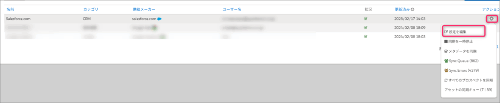 ③ 「salesforce.com」の歯車アイコン → [設定を編集]