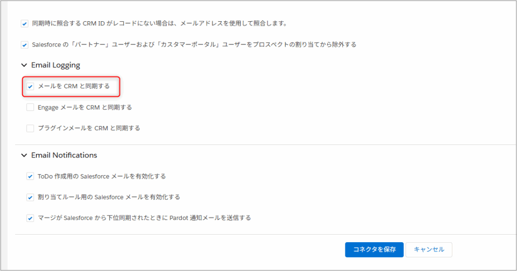 活動履歴をスッキリさせるには、Account Engagementの「コネクタ設定」を変更しましょう。