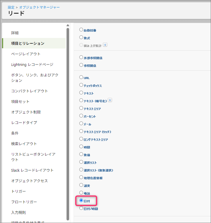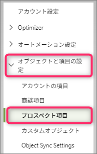 ③ [オブジェクトと項目] → [プロスペクトフィールド]をクリック