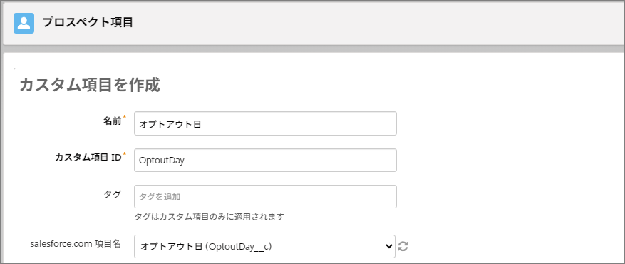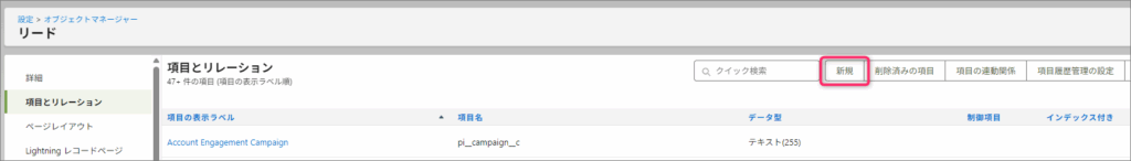 Salesforceで項目が作成できたら、Account Engagement側で項目を作成します。