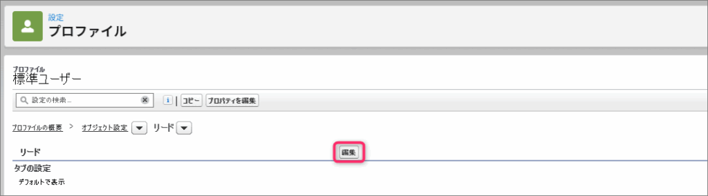 - 該当ユーザーが属するプロファイルまたは権限セットを特定する