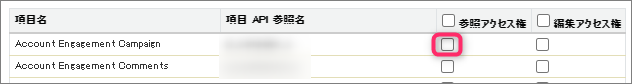 - 「プロファイル」または「権限セット」で項目の読み取り権限を付与