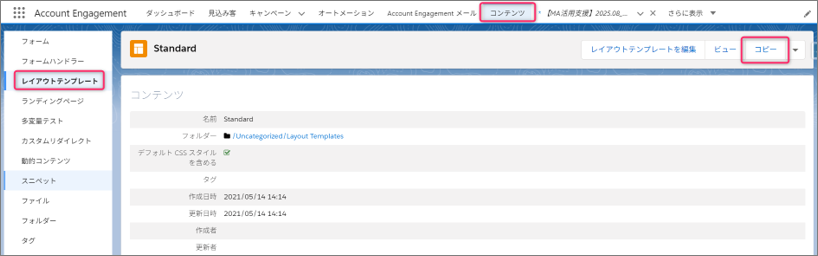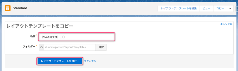 ① 管理画面から「スタンダード」テンプレートをコピーし、用途に応じた名称(例:MA用支援テンプレート)で保存します。