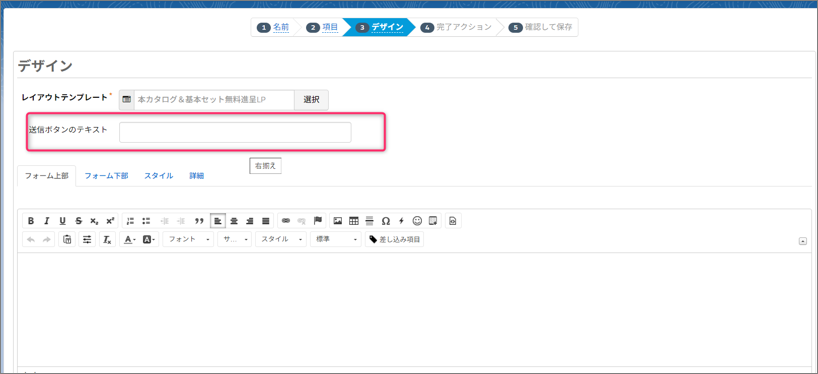④ 送信ボタンのラベル(ボタン名)も適宜カスタマイズしましょう。