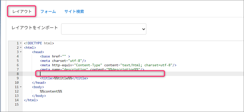 ② HTMLコードの<head>タグの直前に、以下のメタタグを挿入してください。