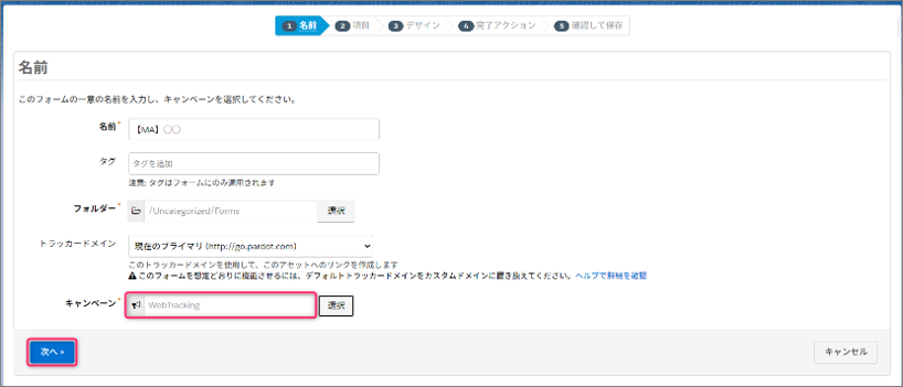 続いて、実際のフォームを作成していきます。ここではフォーム名の設定から、各項目の設計までを行います。