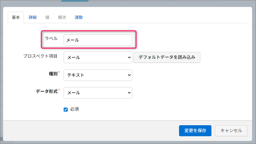 ※メールアドレスは必須ですが、それ以外の氏名などの項目は既存プロスペクトへの送信では不要な場合が多いです。