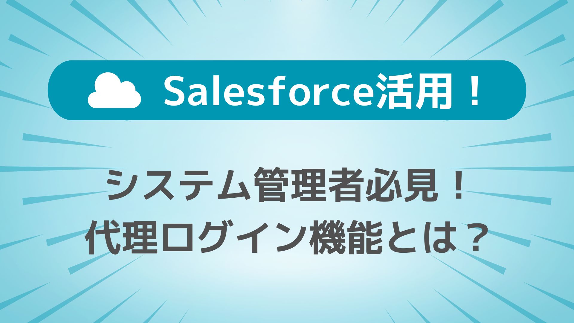 Salesforceの代理ログイン機能は、ユーザーサポートやトラブル対応にとても便利なツールです。