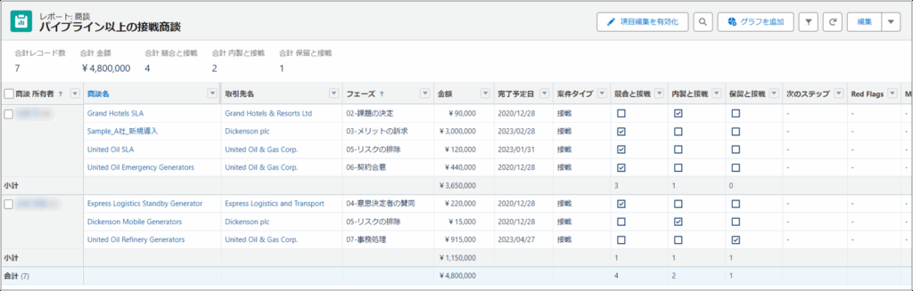 リストビューは、日常業務で個別レコードを迅速に確認・編集する際に便利ですが、レポートは、リストビューに比べて、より複雑なデータの抽出や集計を行うことができ、データを広範に分析し、ビジネスのパフォーマンスを全体的に把握したいときに使用します。