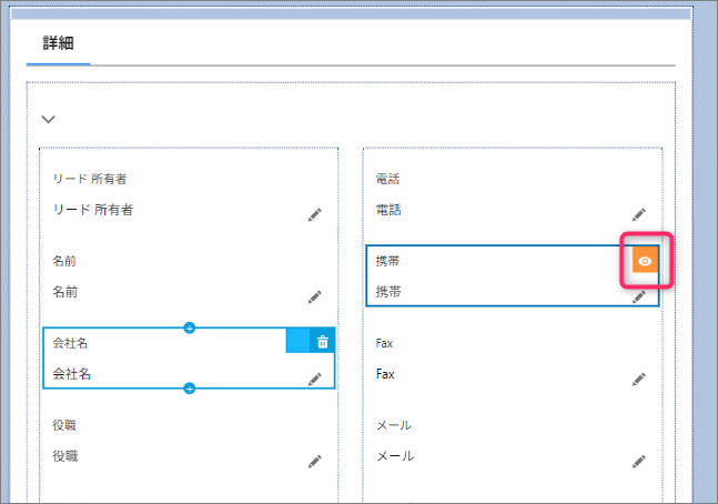 条件に基づくフィールドの表示設定
