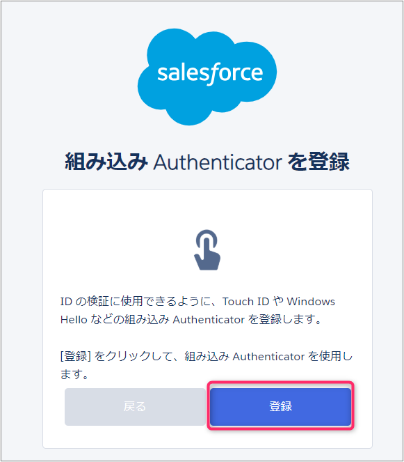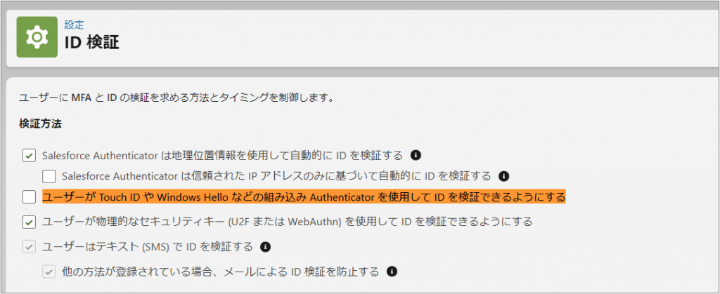 組み込みのAuthenticator(Windows Hello、Touch ID)は、登録したデバイスからしかSalesforceにログインできないため、そのデバイスでのみMFAが利用可能です。