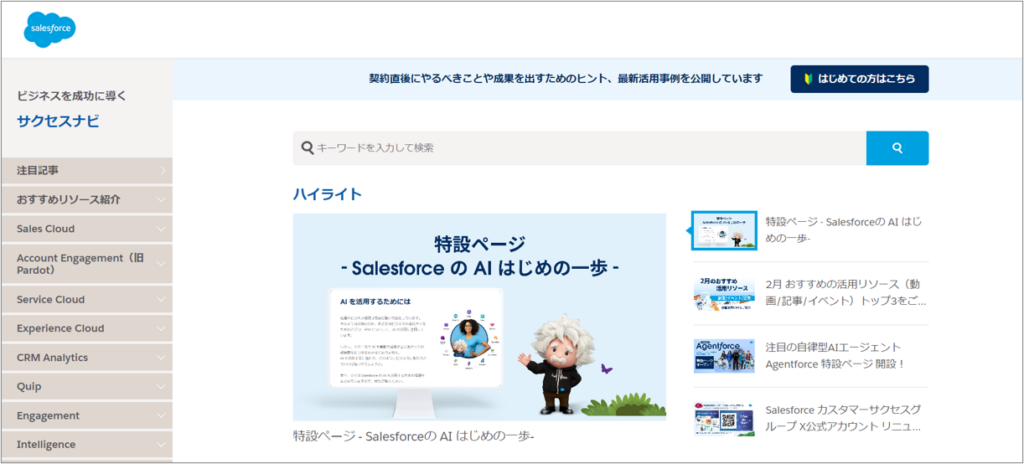 Salesforceに関する詳細な情報を提供し、ユーザーが自身の業務にどのようにSalesforceを活用できるかを学べるツールとなっています。特にサクセスナビは実際の業務で直面する課題に即した内容が豊富で、使い勝手の良さが特徴です。