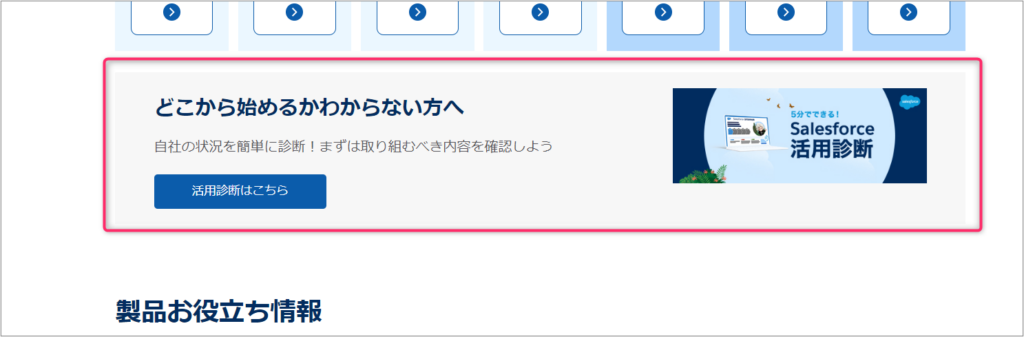 もしどこから手をつけたら良いかわからない場合には、それぞれの製品のはじめてガイドページにある、活用診断をやってみるのもおすすめです。