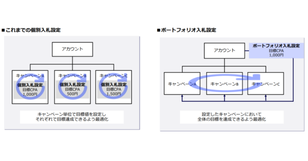 この機能は、キャンペーンごとに個別の入札戦略を設定する従来の方式とは異なり、複数のキャンペーンを一つのグループ(ポートフォリオ)として束ね、一括で管理・最適化することを目的としています。