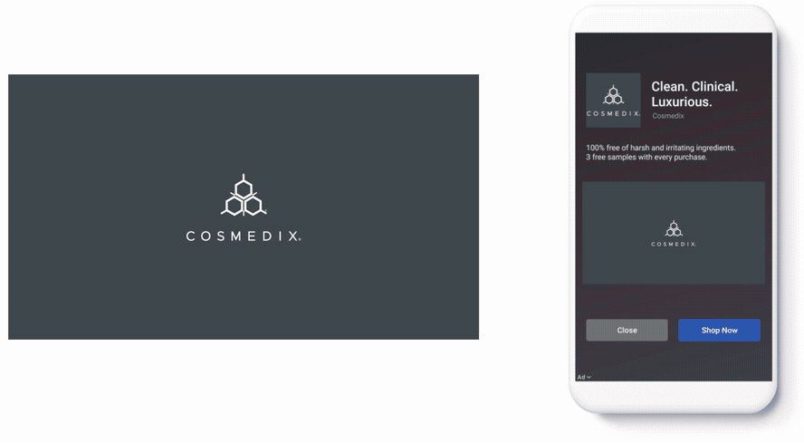 サンプル動画からわかるように、登録した画像やロゴ画像をテキストとうまく組み合わせ、スライドショー形式で表示しているようです。このように広告に動きが入ることで、画像とテキストが並んでいるだけの広告よりもかなり目立ちそうですね!