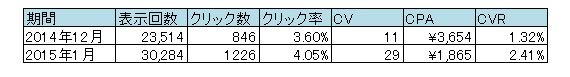 CVRだけではなく、表示回数もクリック率も1月の方が上がっているのは、