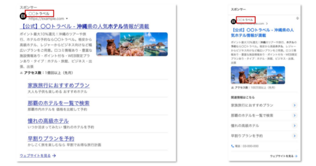 広告文の最上部にブランド名が表示されるため、ユーザーの視線を強く惹きつけます。
